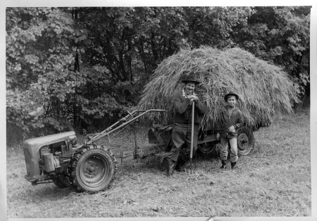 I´m sure you know.... The one with the small hat is me, and the one with the pipe and the big hat is.... Sepp again ! And the praehistoric vehicle is/was our Holder Einachser...